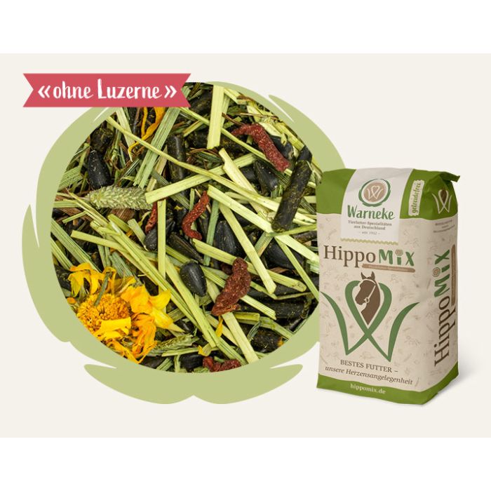 Da manche Pferde Luzerne nicht gut vertragen, enthält unser Dosto Flor+ bewusst keine Luzerne.