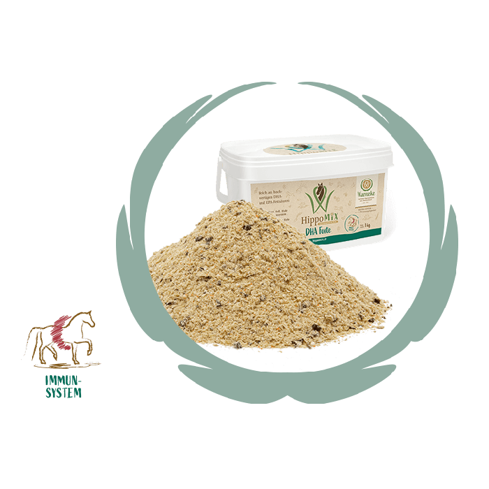 HippoMiX DHA Forte kann unter Berücksichtigung der Gesamtration problemlos mit anderen HippoMiX Produkten kombiniert werden, um das Wohlbefinden des Pferdes zu fördern.