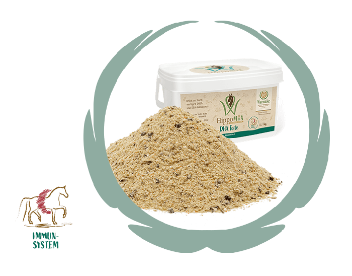 HippoMiX DHA Forte kann unter Berücksichtigung der Gesamtration problemlos mit anderen HippoMiX Produkten kombiniert werden, um das Wohlbefinden des Pferdes zu fördern.