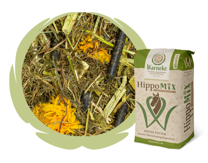 Unser HippoMiX Alm Grün enthält spezielle Kräuter wie z.B. Ringelblume, Anis, Fenchel, Bockhornklee, Kamille und Oregano.