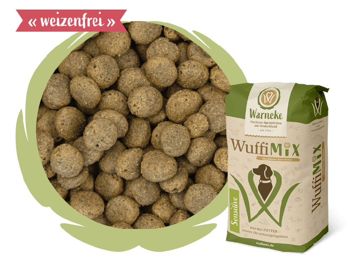Unser WuffiMix Sensitive ist ein Alleinfuttermittel für ernährungssensible Hunde mit normaler Aktivität.