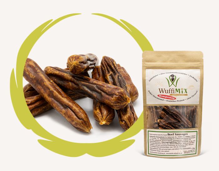 WuffiMIX Beef Sausages sind daher besonders für ernährungssensible Hunde geeignet.